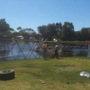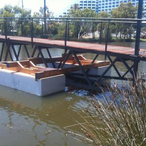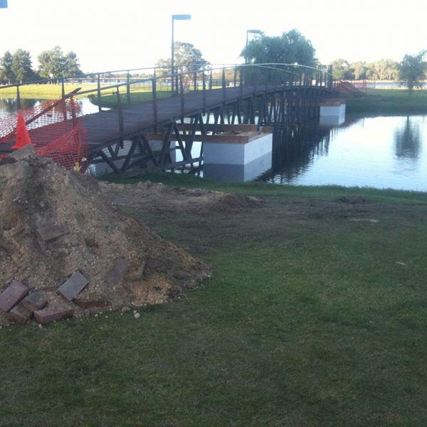 Southwind was contracted to relocate an existing foot bridge to allow for the development of the area. The existing structure was raised, floated and reinstalled into a new location.